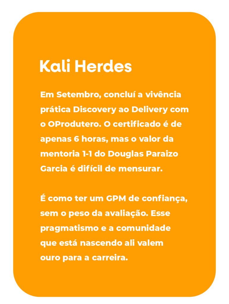 Criei o OProdutero para ser um programa que reduz a distância entre teoria e prática. Ajudo PMs, e aspirantes, a pensar estrategicamente, entregar com clareza e crescer de forma consistente no mercado.